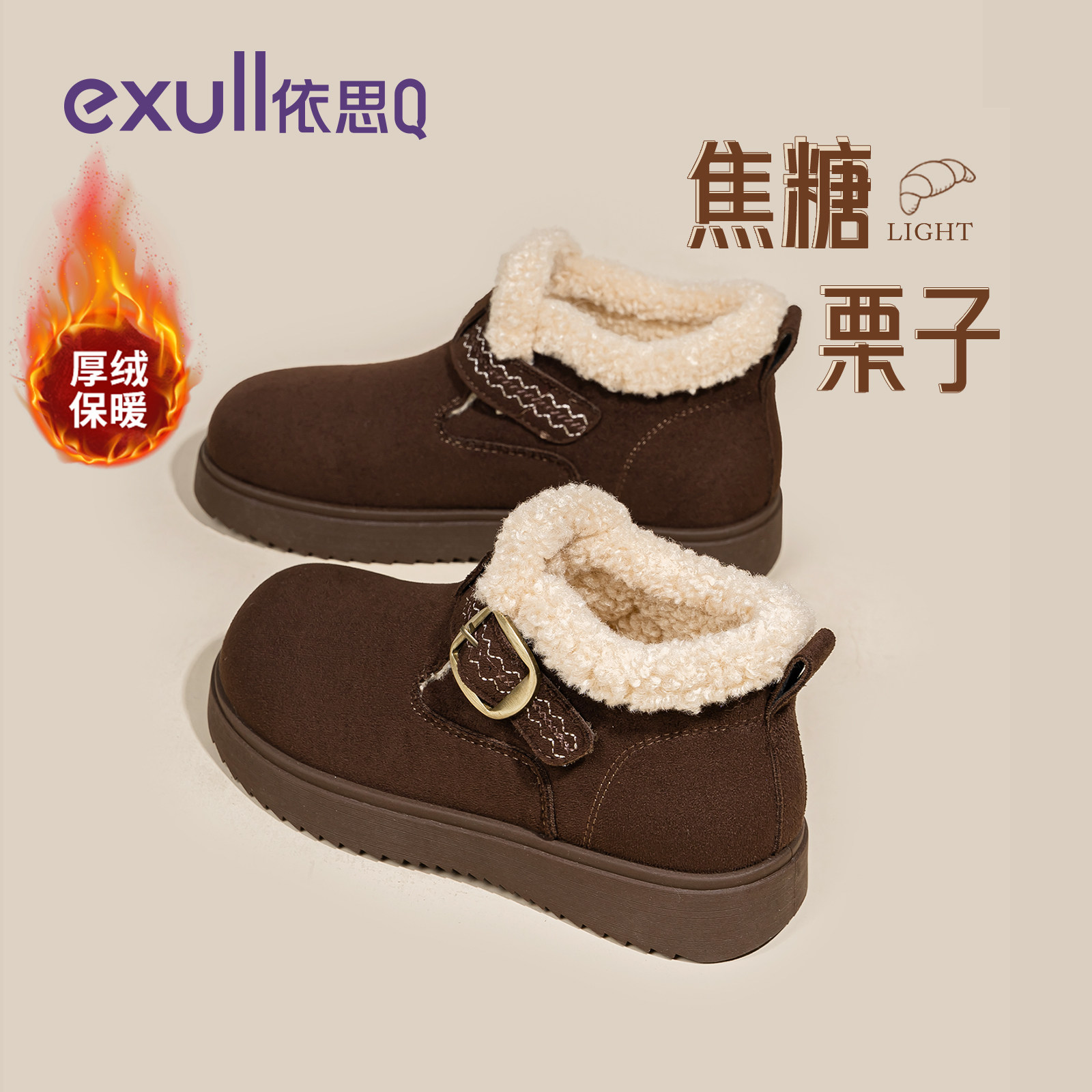 依思q加绒雪地靴女2026新款冬季厚底毛绒休闲板鞋超好看棉鞋子冬