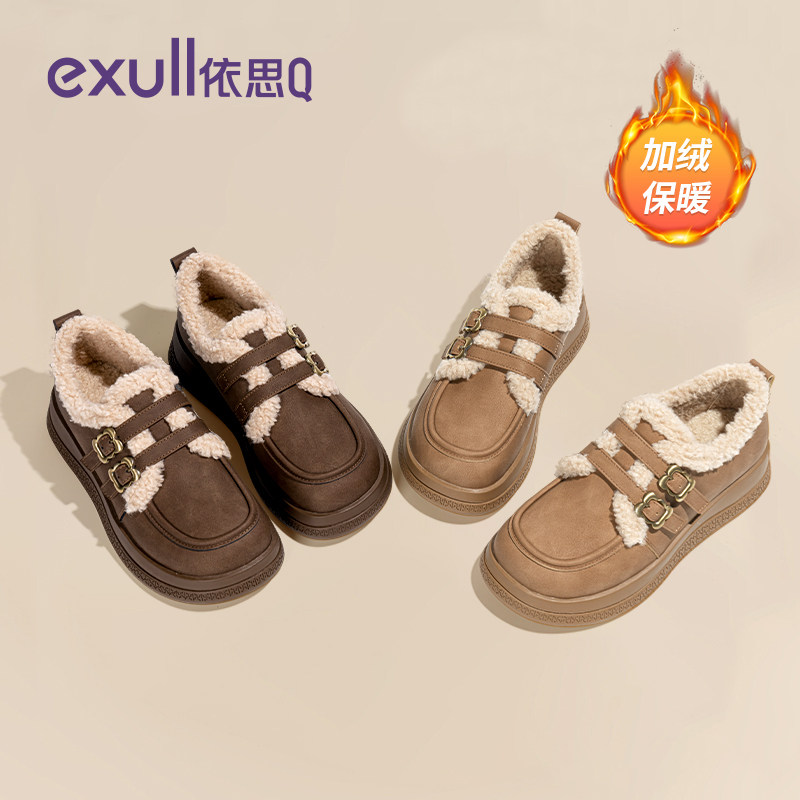 依思q加绒勃肯鞋女厚底2025冬季新款保暖毛毛乐福棉鞋复古雪地靴