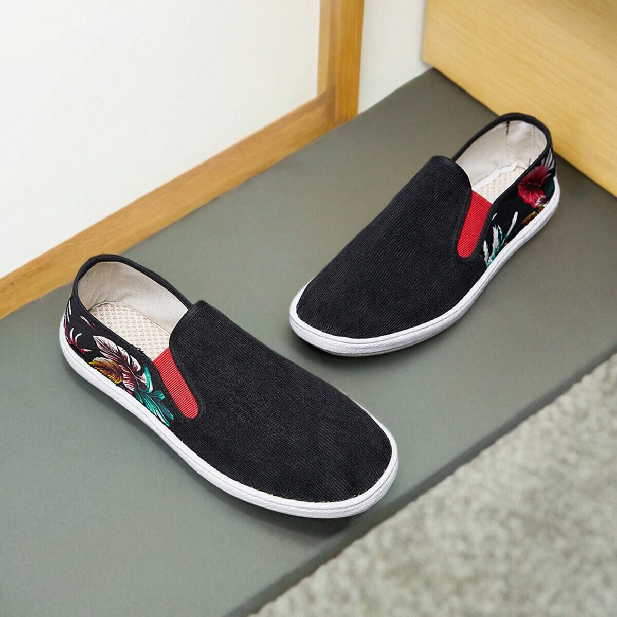 台州西山布鞋男手工男花布鞋透气牛筋底单鞋一脚蹬套脚鞋社会布鞋