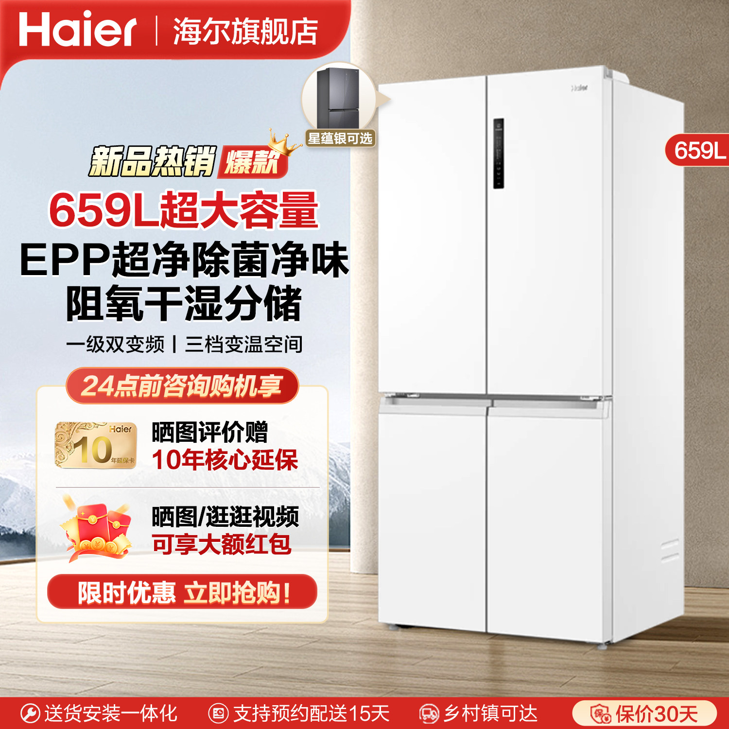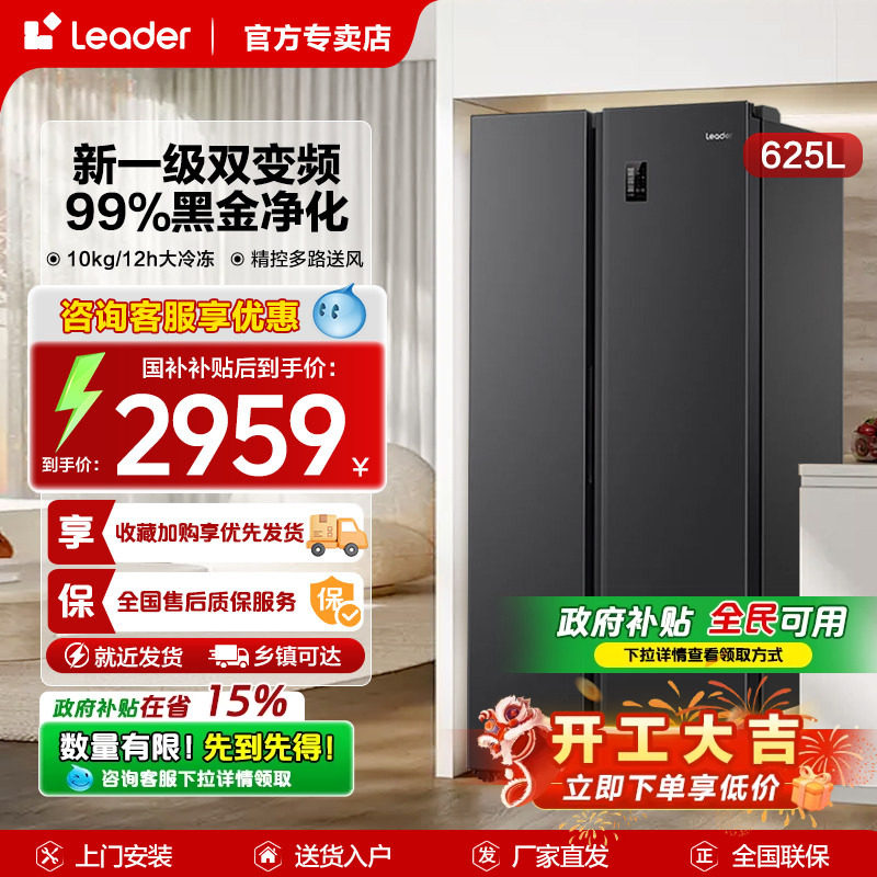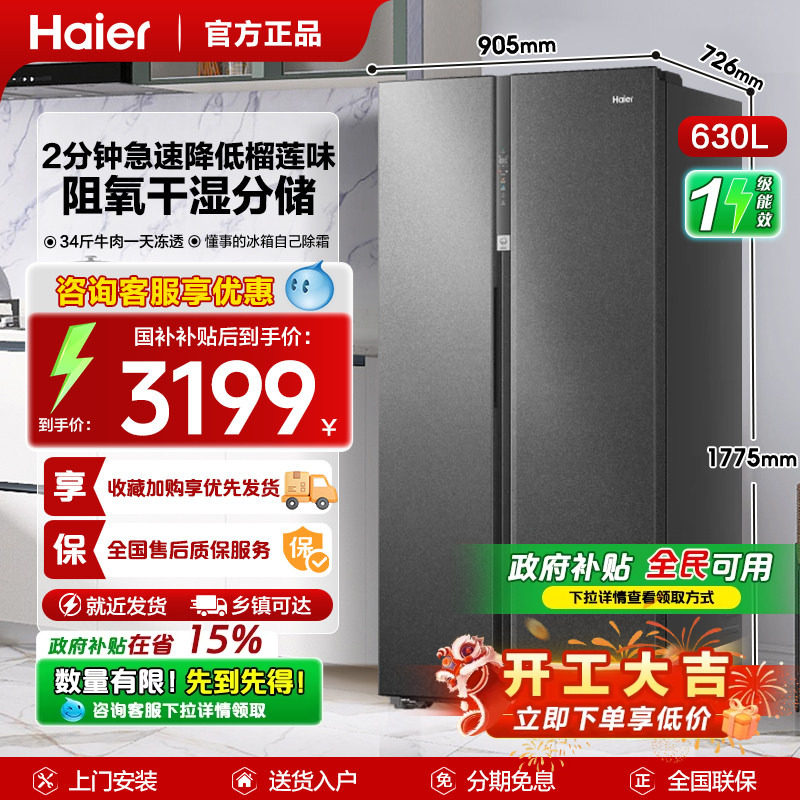 【囤货精选】海尔冰箱620升对开双开门超大容量一级变频官方正品