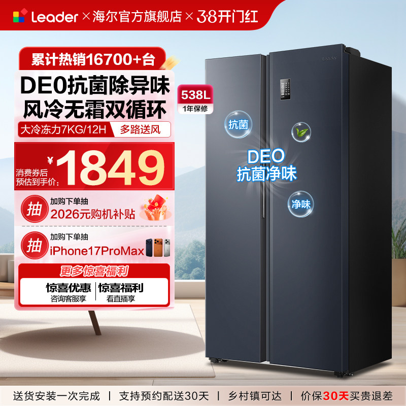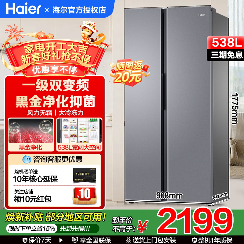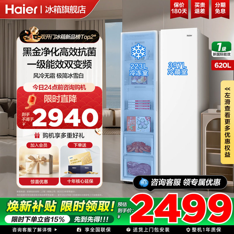 焕新补|海尔冰箱538/620升对开双开门一级能效家用变频超大容量