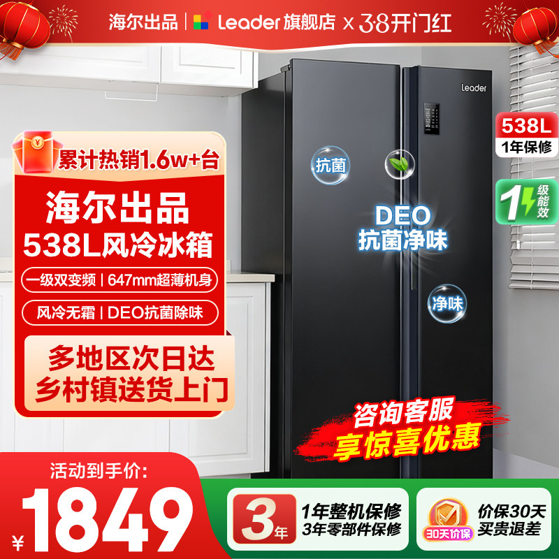 换新补贴海尔出品统帅538L对开双开门无霜一级变频大容量家用冰箱