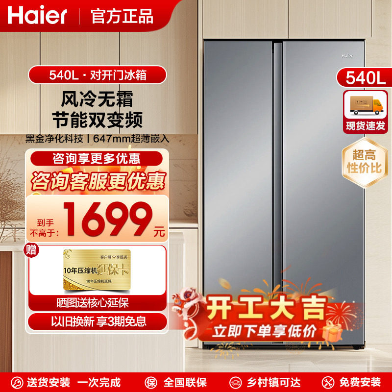 海尔冰箱 双开门对开门540L变频无霜家用大容量超薄变频【新品】