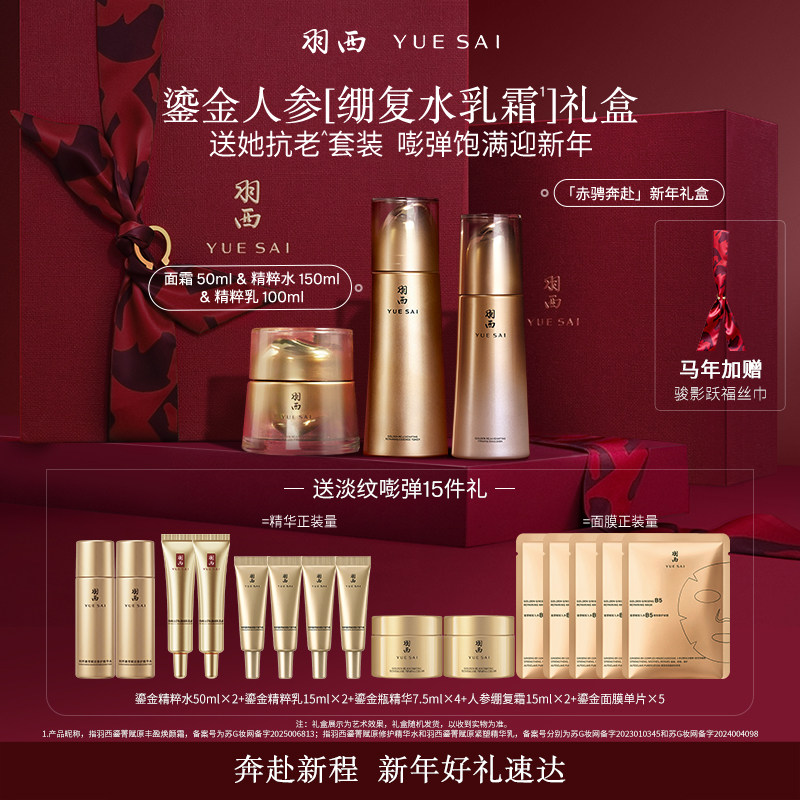 [新年礼物]羽西鎏金水乳人参绷复面霜21%玻色因溶液淡纹抗皱套装