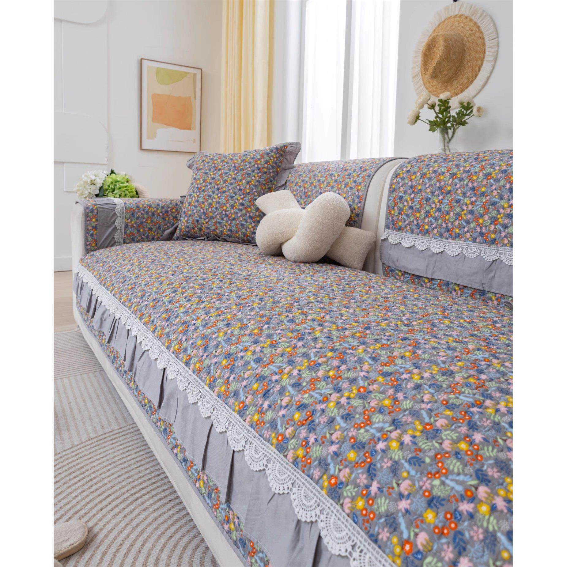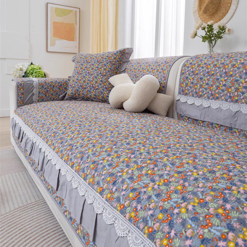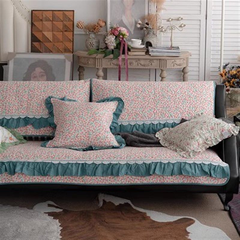 四季全棉防滑沙发垫布艺纯棉碎花秋季田园坐垫裙边通用皮沙发巾套