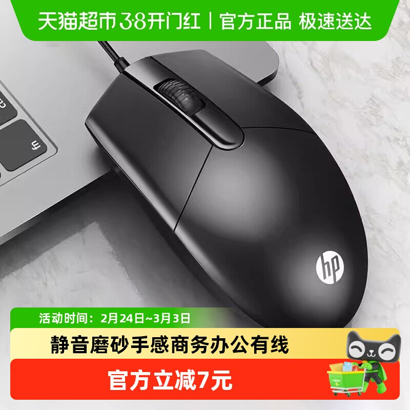 HP/惠普鼠标有线usb静音办公游戏通用笔记本电脑台式磨砂手感无声