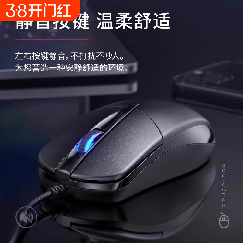鼠标有线USB静音无声家用办公台式笔记本电脑男女商务电竞游戏机