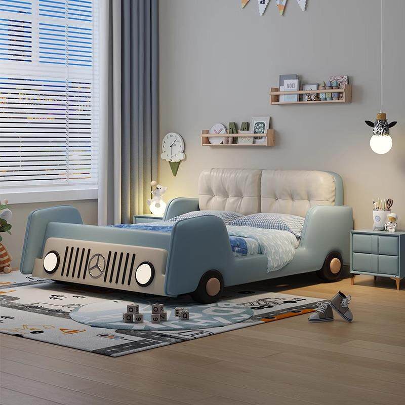 新型儿童床男孩汽车床1米5双人床多功能男生实木软包床男童卧室床