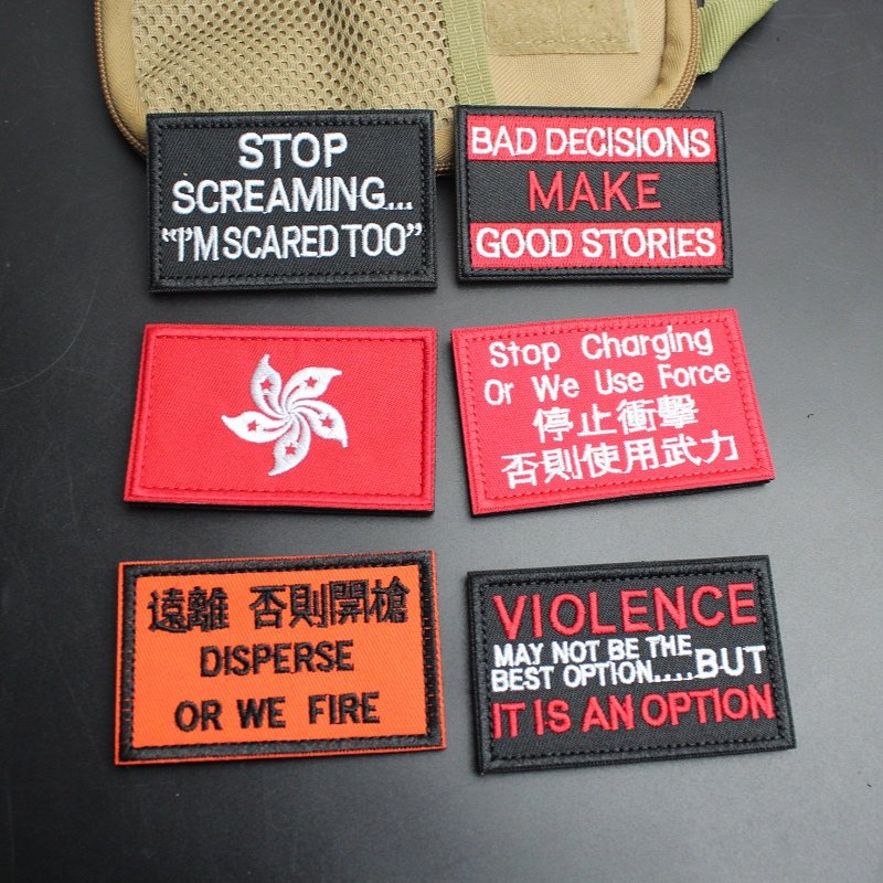 刺绣个性魔术贴章港风警示标语 远离 使用武力贴章士气章臂章胸章