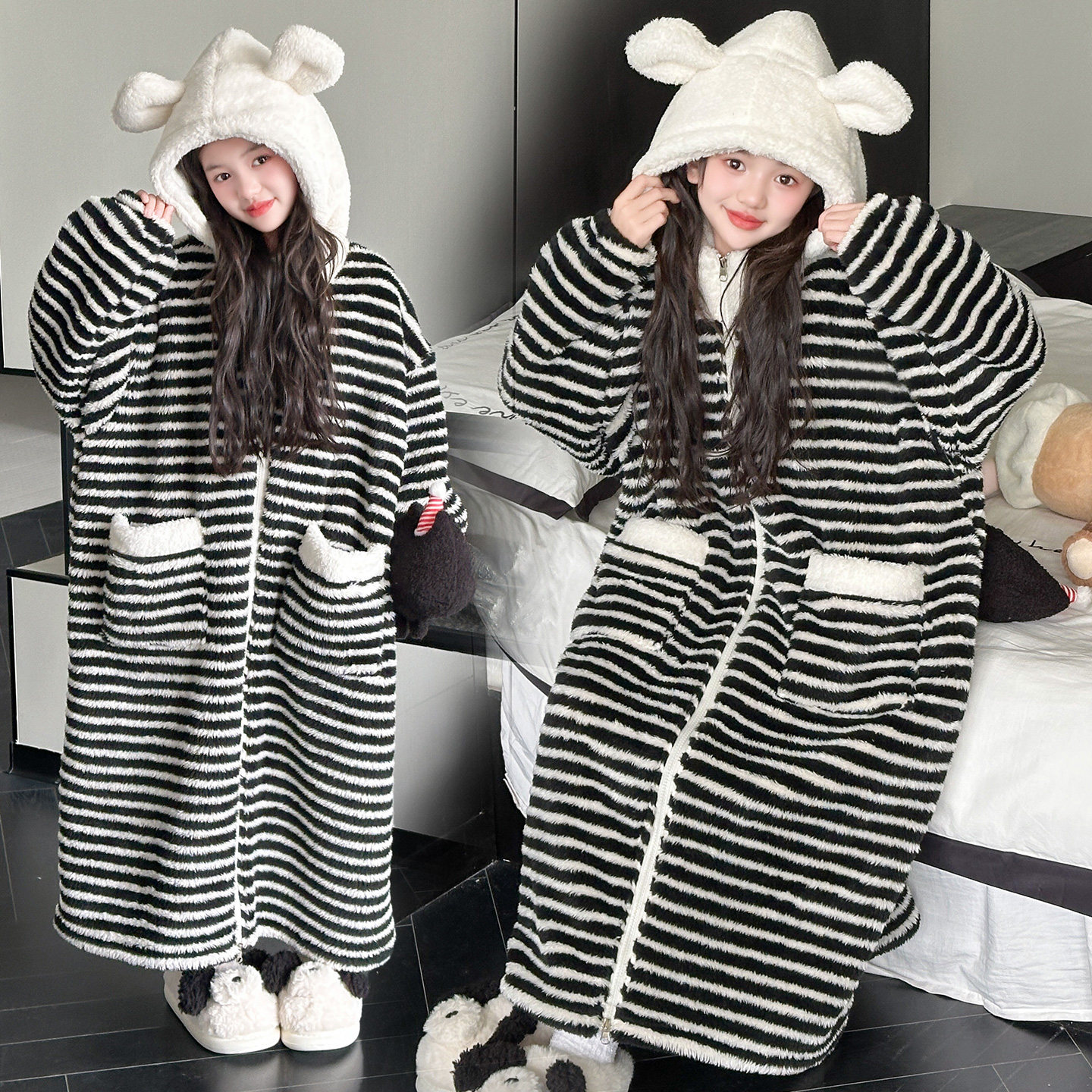 露比女童珊瑚绒睡袍冬季加厚长款睡裙法兰绒女孩初中生可爱家居袍