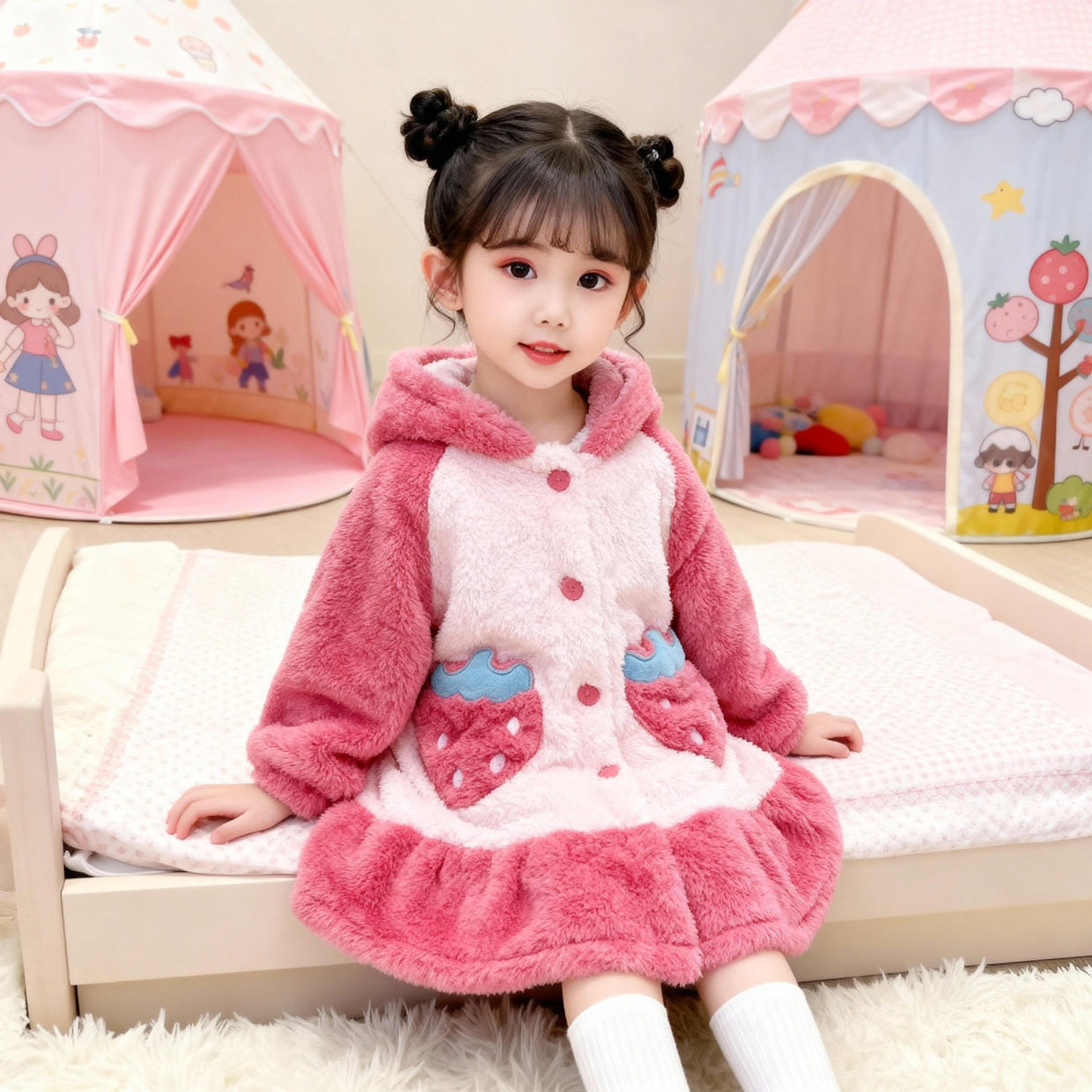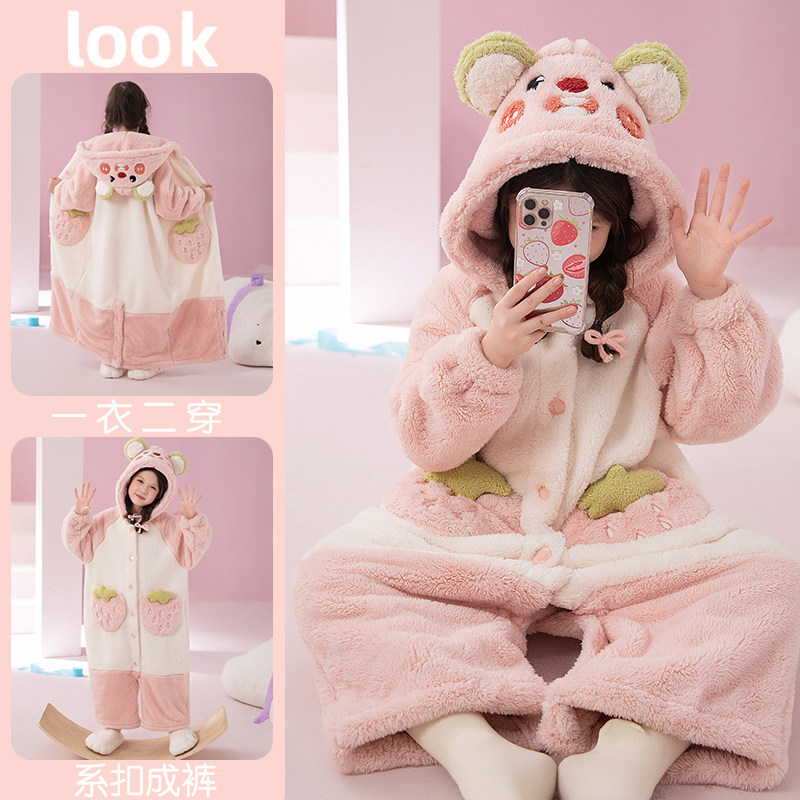2025新款女童珊瑚绒睡袍秋冬款加厚保暖小女孩斗篷儿童睡衣家居服