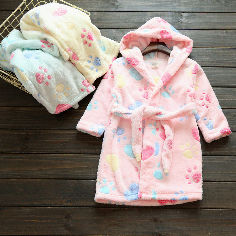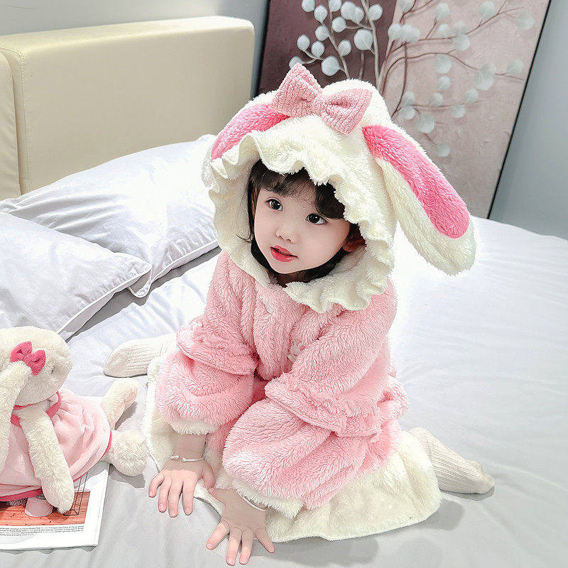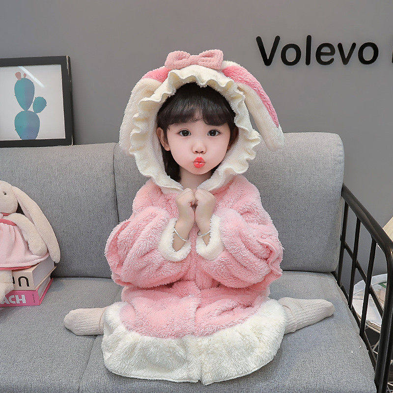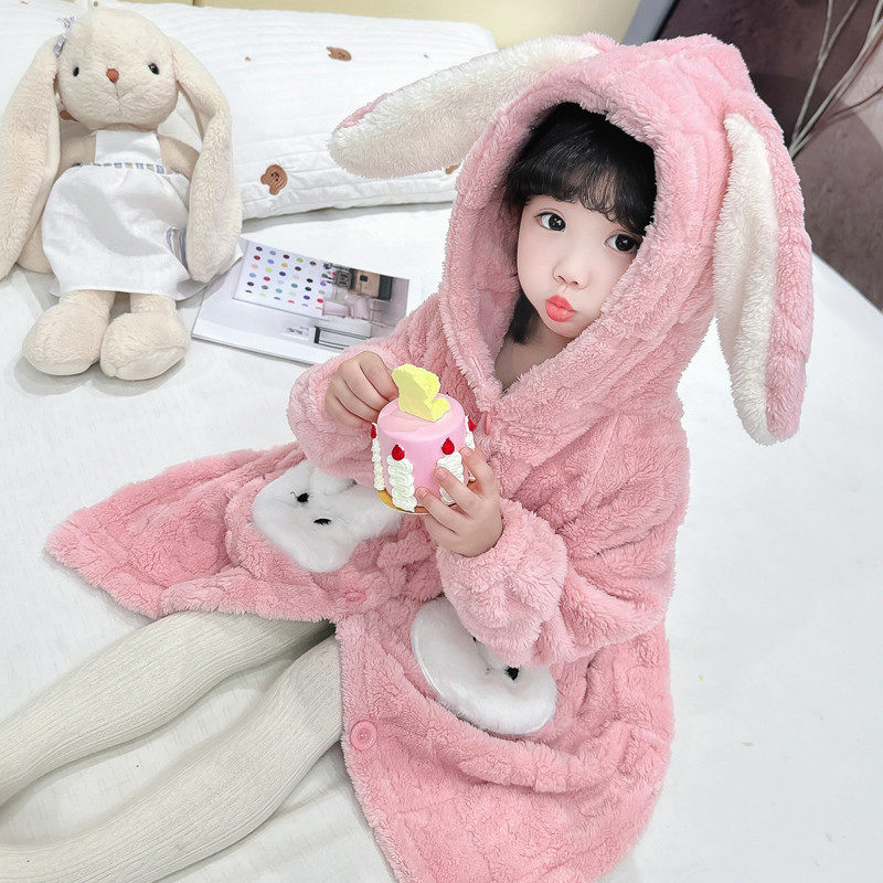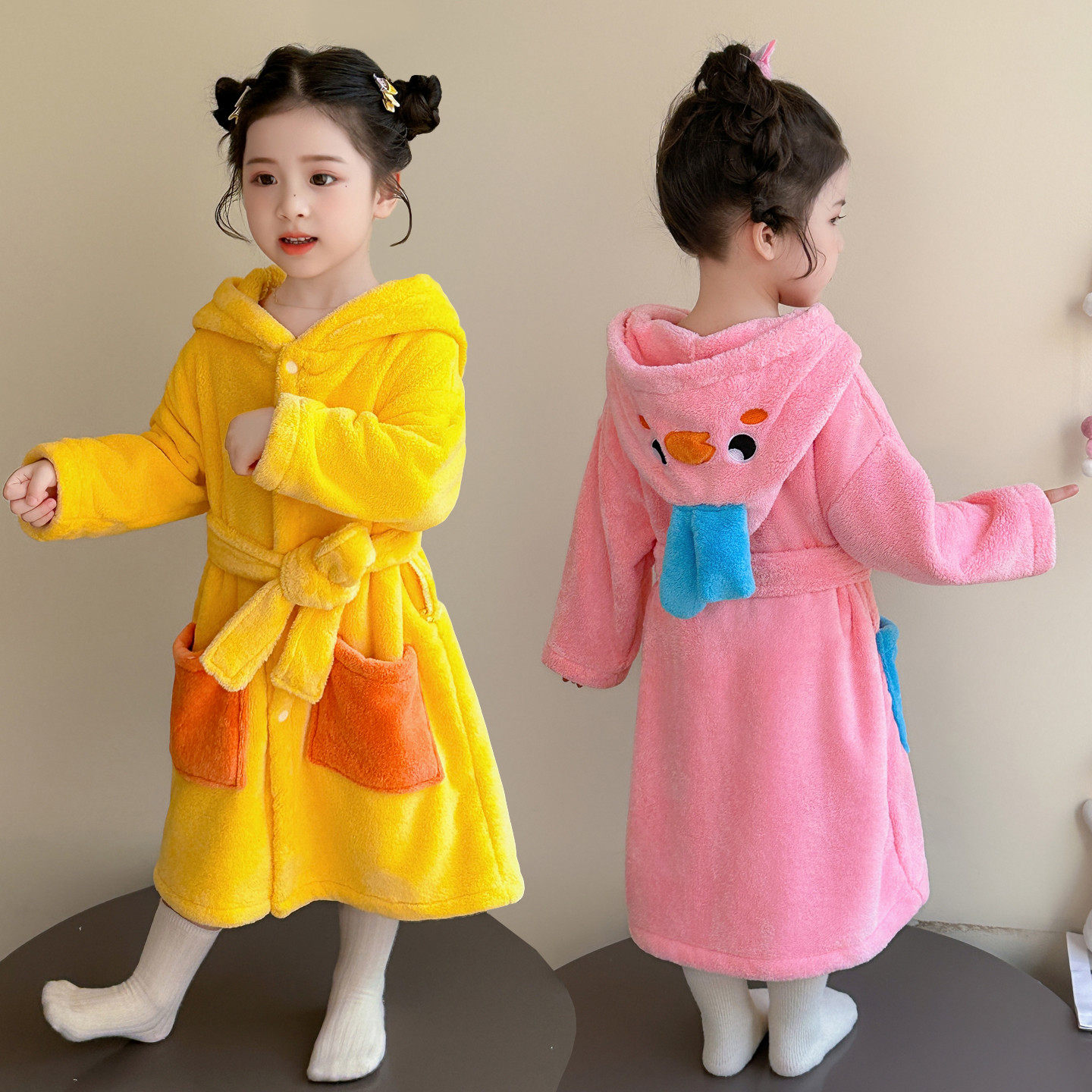 宝宝浴袍秋冬季女童珊瑚绒睡袍女孩法兰绒保暖浴巾儿童睡衣家居服