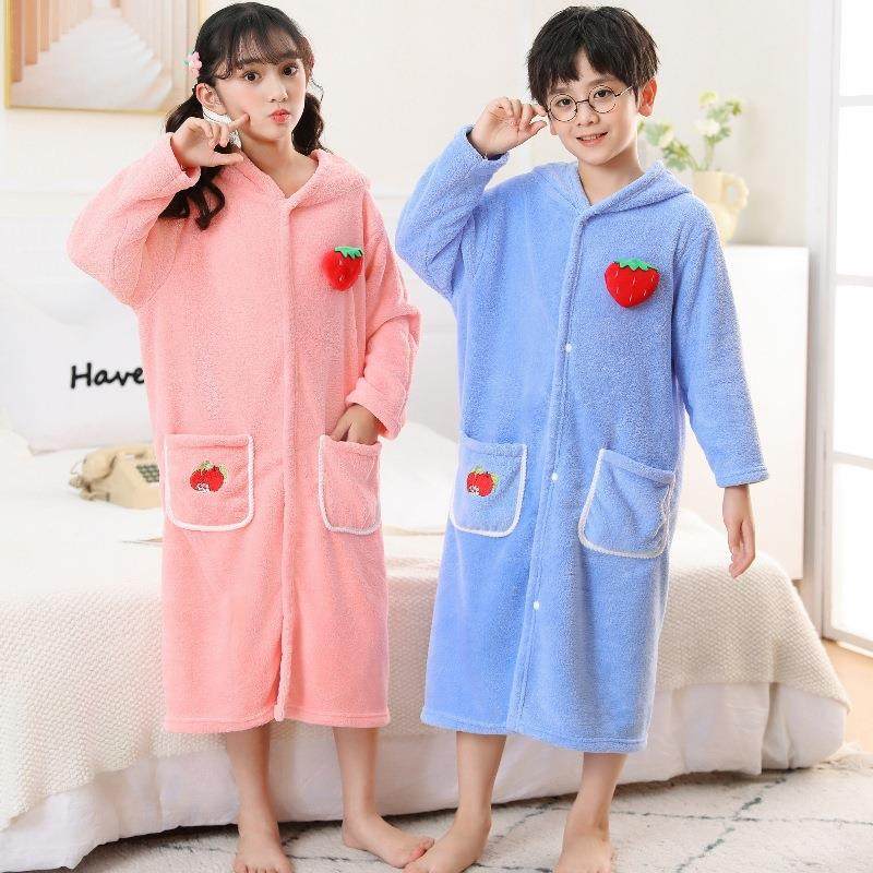 秋冬儿童睡袍珊瑚绒大童吸水速干宝宝加厚浴衣女童毛巾料男童浴袍