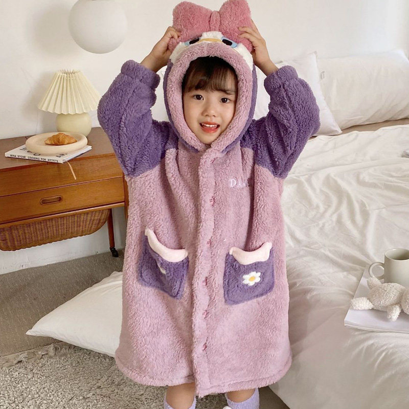 黛西女童珊瑚绒睡袍秋冬季加厚卡通女孩中大童宝宝儿童家居服睡衣