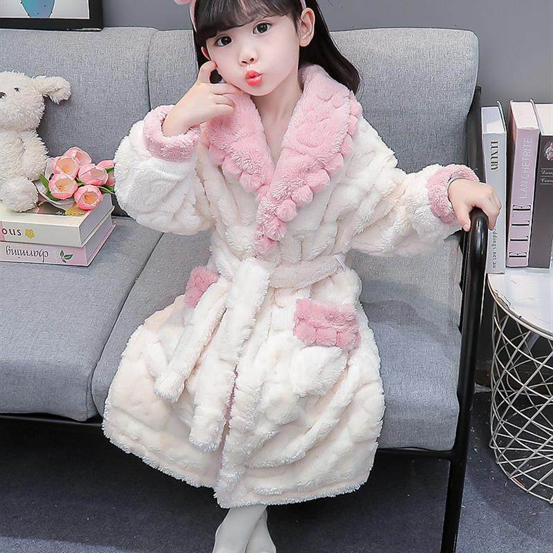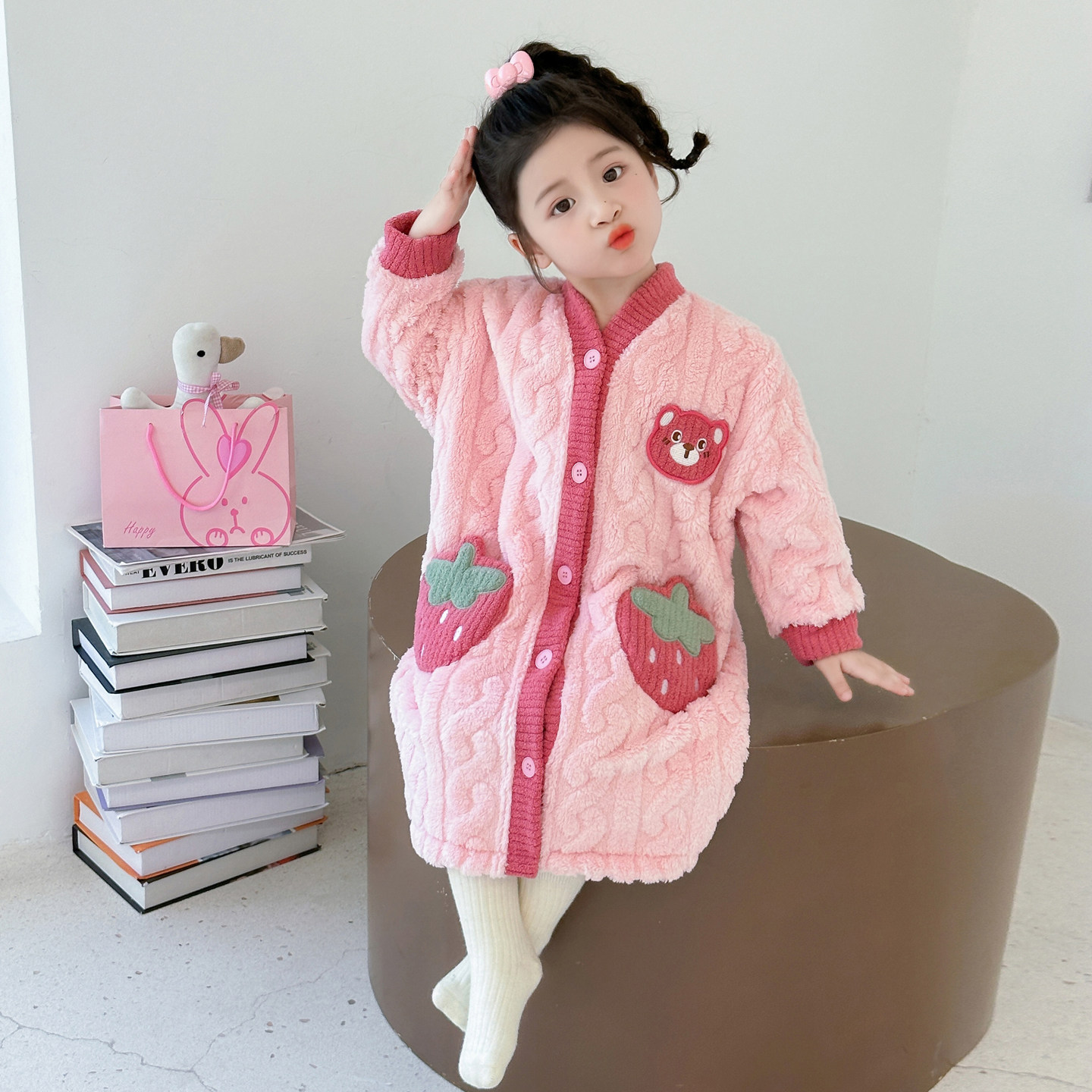 千线艺女童珊瑚绒睡袍小孩冬加厚儿童学生保暖居家冬季款女孩浴袍