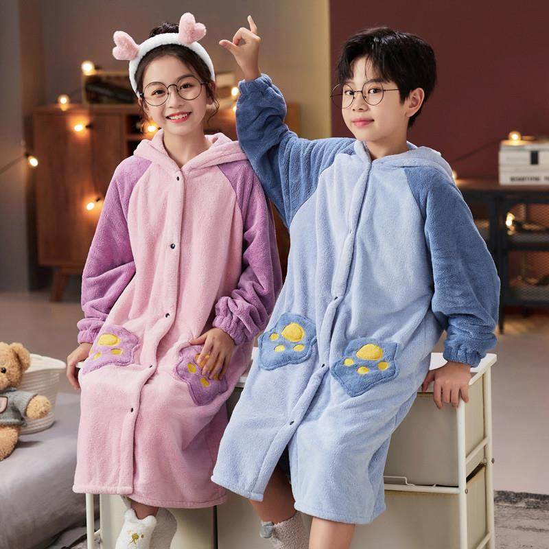 童装儿童加厚睡袍男女童秋冬季法兰绒浴袍中大童珊瑚绒睡衣家居服