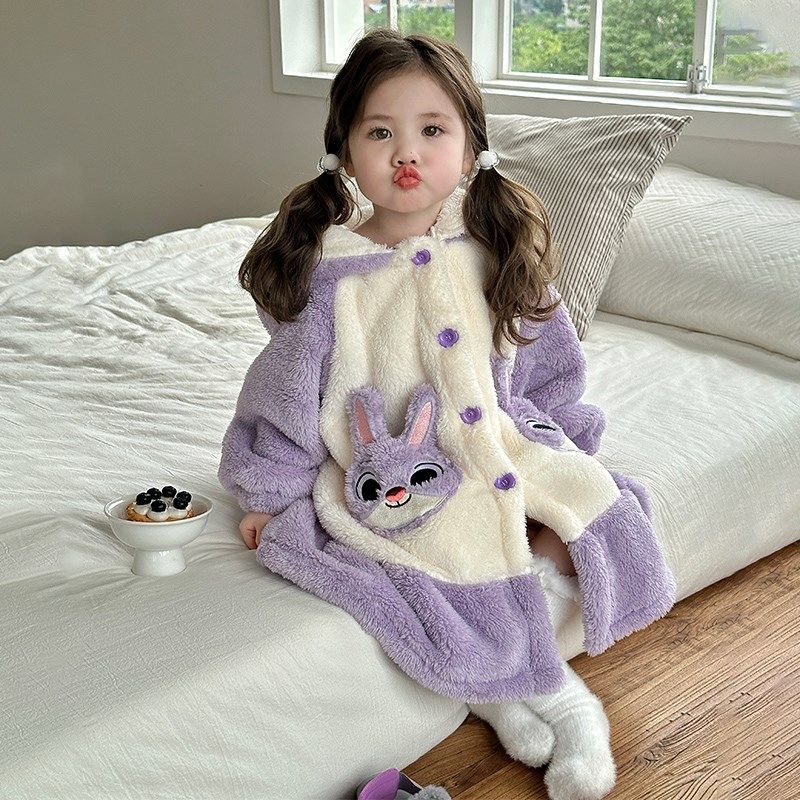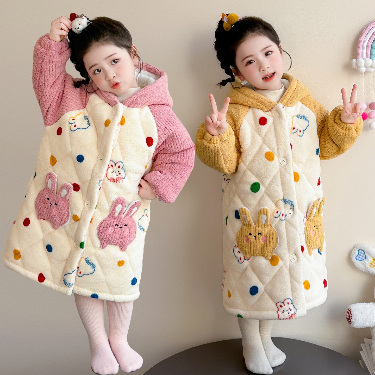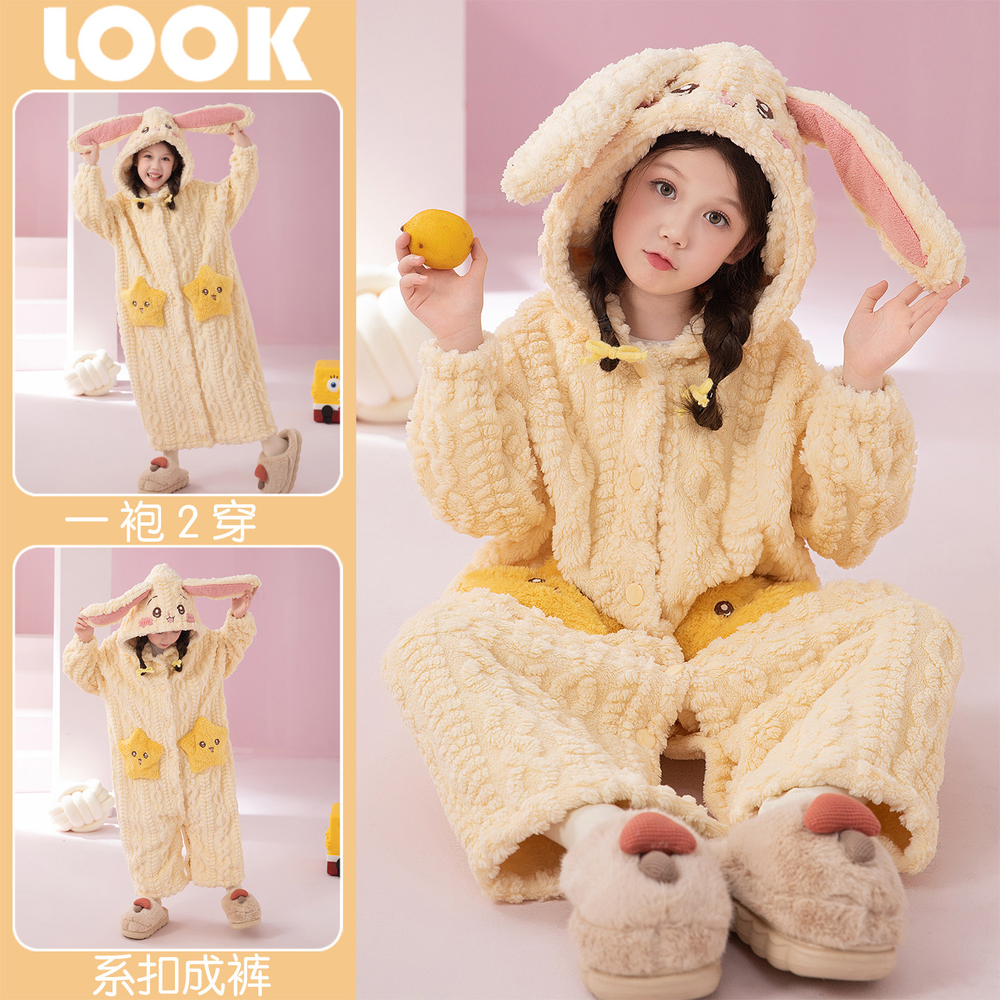 都市丽人2025新款女童珊瑚绒睡袍冬季加绒保暖可爱儿童睡衣家居服