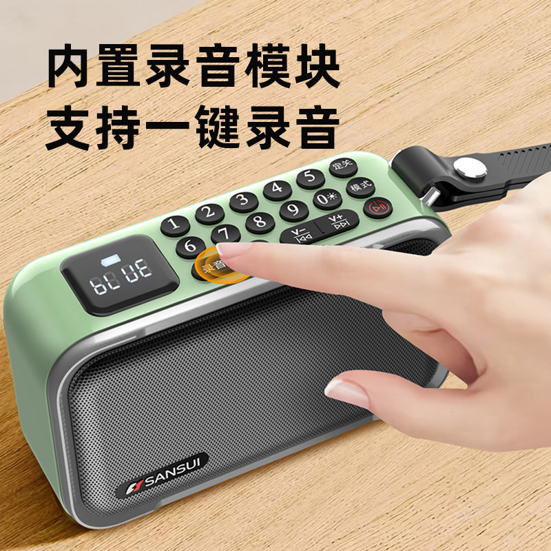 山水F59新款FM调频收音机便携式蓝牙音响老人听戏机一键录音删除