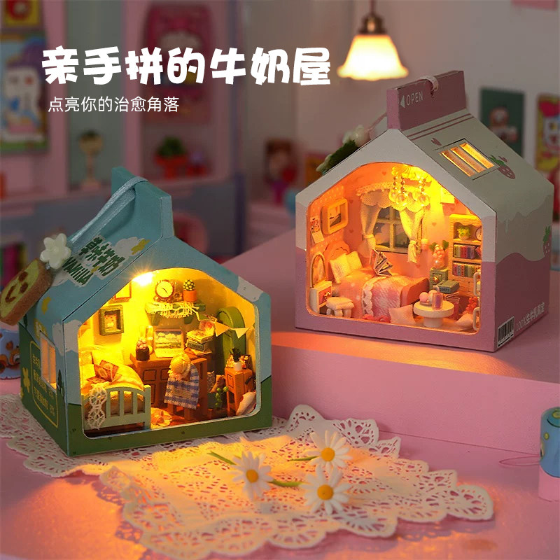 天予牛奶盒儿童成人礼物diy小屋手工拼装小屋创意生日拼装小夜灯