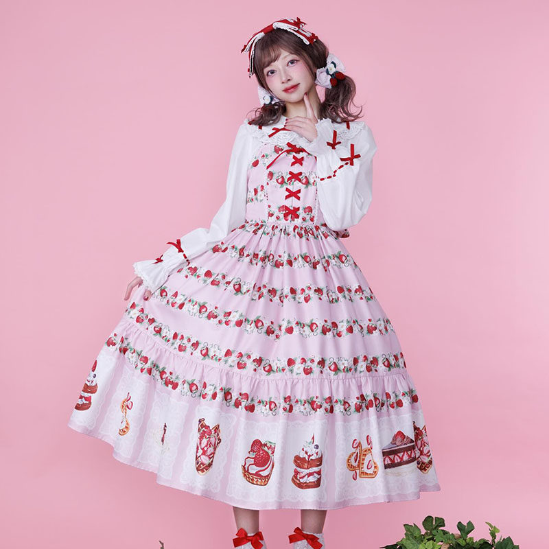 axesfemme日系甜美焗烤浆果系列印花Lolita长款吊带裙TS341X06C