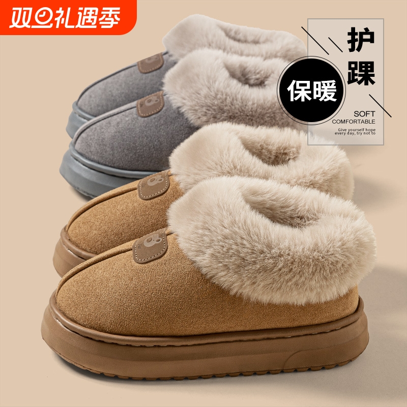 包跟棉鞋女秋冬韩版时尚高帮保暖毛绒厚底外穿防滑拖鞋女新款棉鞋