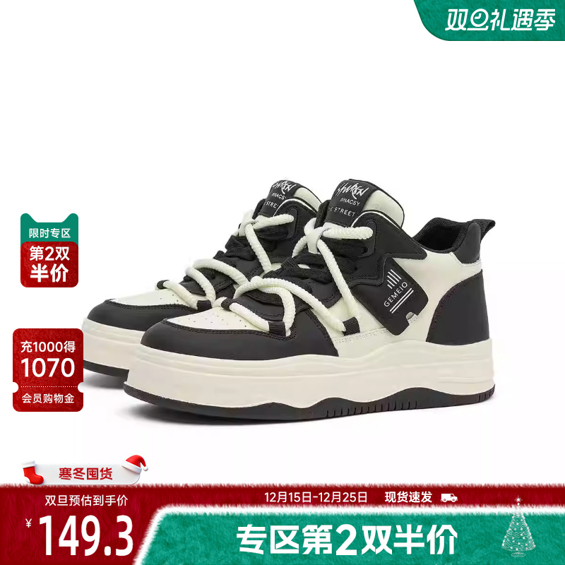 高蒂2025冬季高帮小白鞋新款韩版女学生厚底增高运动板鞋休闲街拍