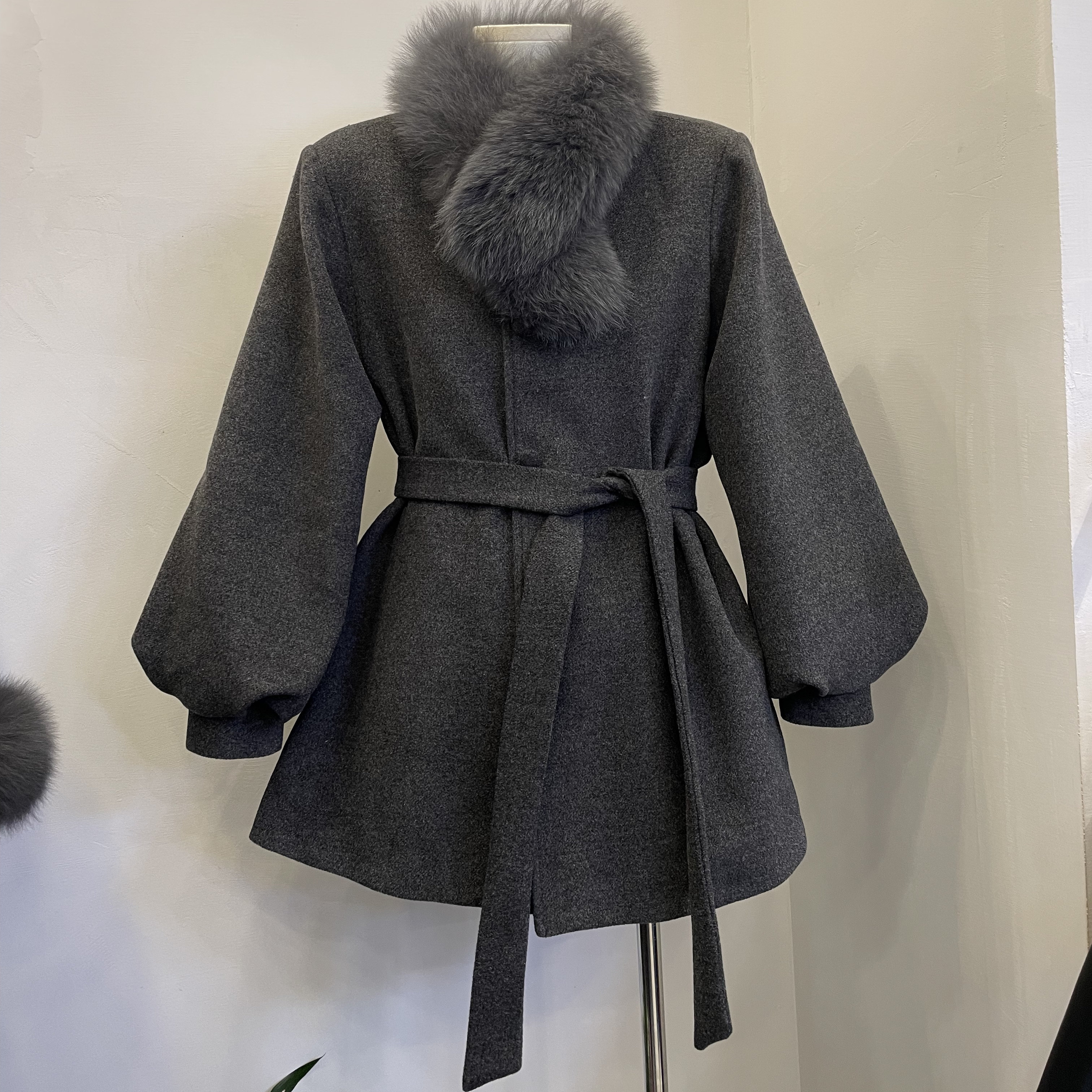 名媛气质狐狸毛围脖毛呢大衣收腰气质显瘦小个子白鸭绒内胆外套潮