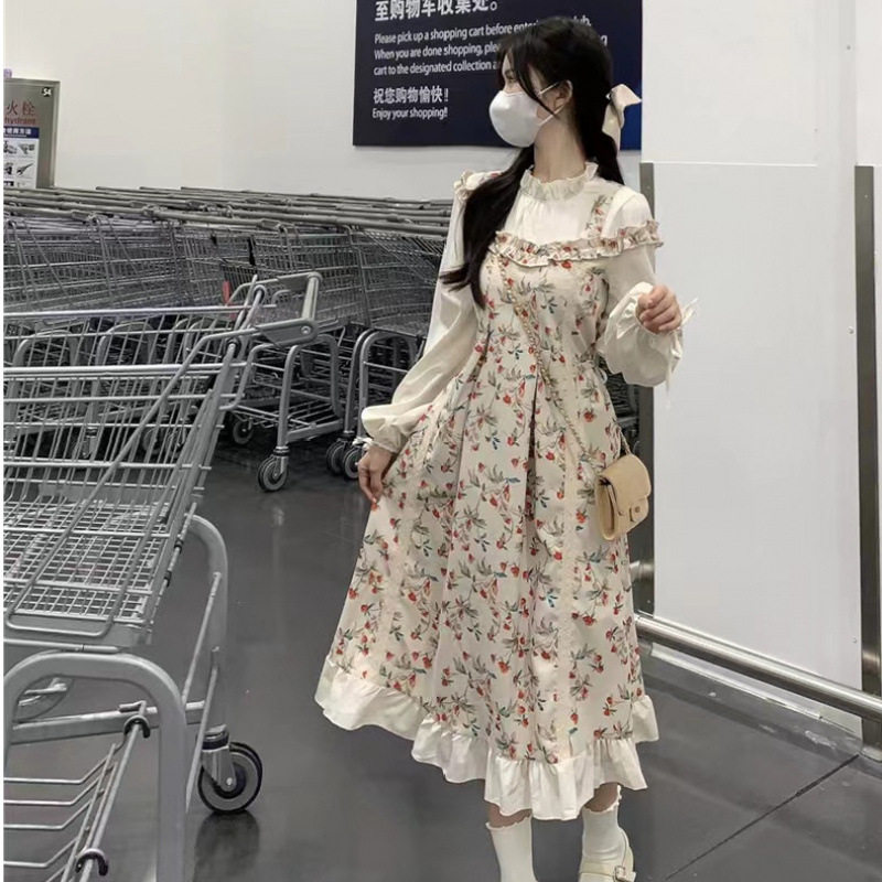 法式气质名媛女装大佬大码变装衣服可爱宽松显瘦拼接男伪娘连衣裙