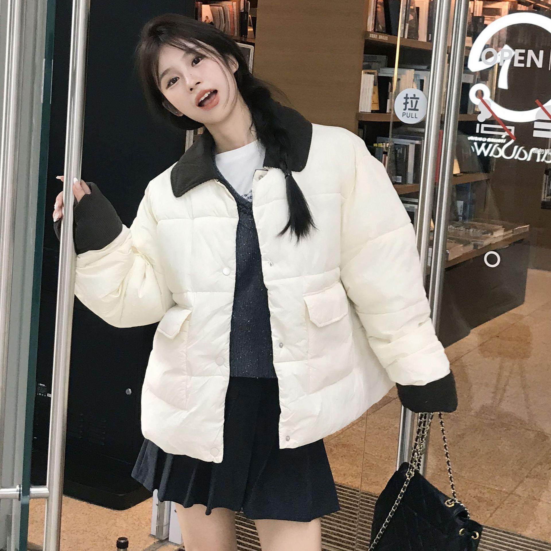 欧美风灯芯绒领拼接小香风棉衣棉服女冬季新款气质名媛女装外套潮