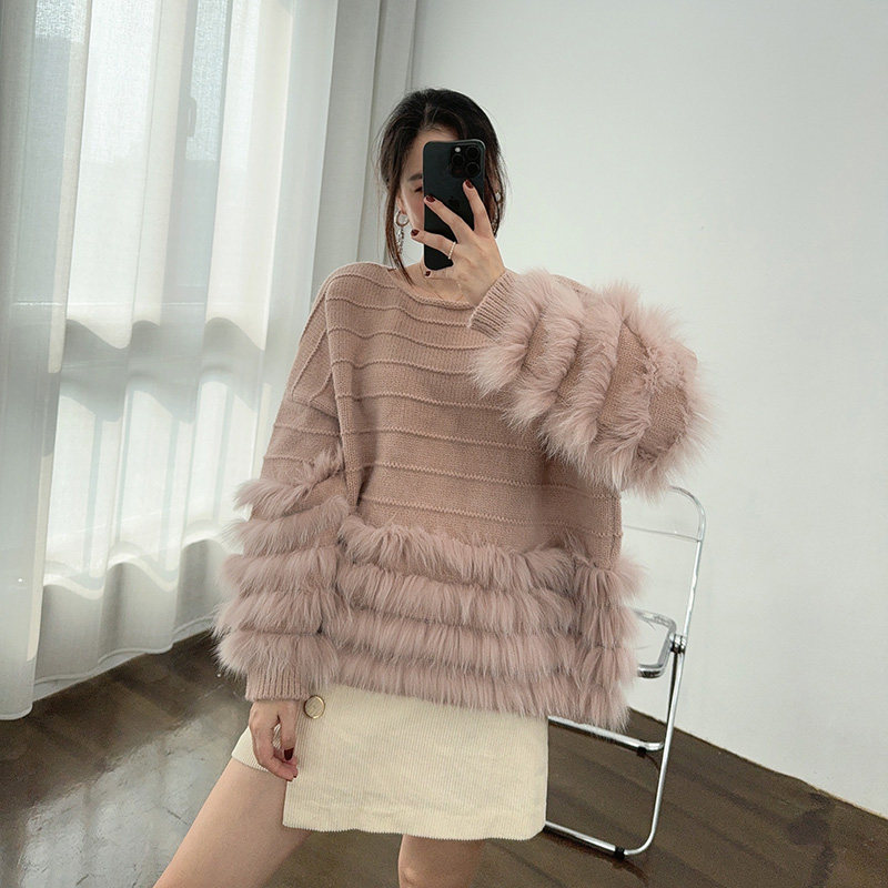 洋气减龄气质名媛高端小香风软糯羊毛套头毛衣狐狸毛皮草女2025