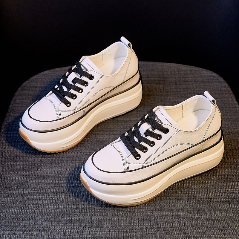 真皮网红小白鞋女秋新款韩版厚底松糕鞋内增高10cm休闲单鞋子百搭