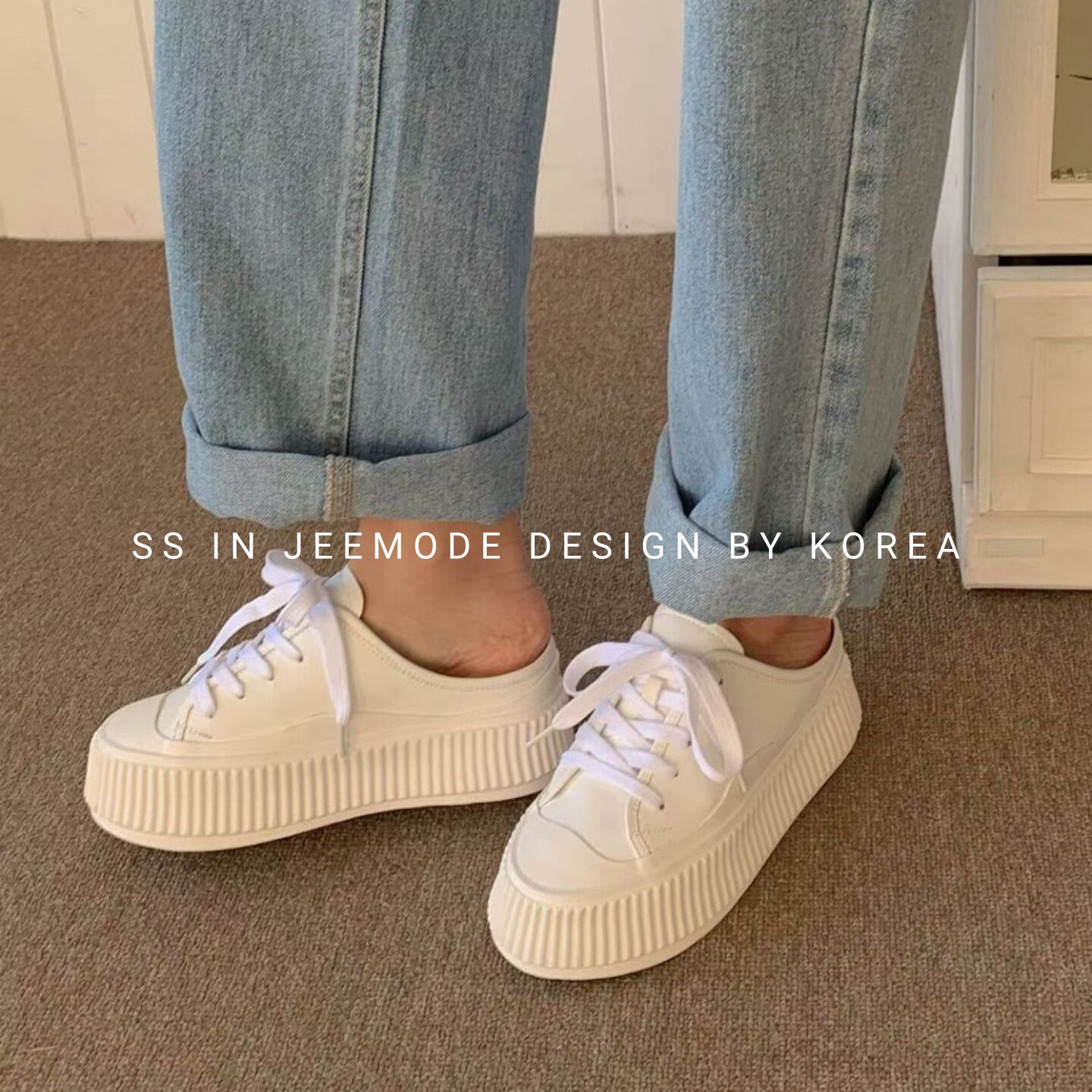 小池在首尔26年早春新款韩版厚底松糕鞋休闲系带增高饼干鞋包头拖