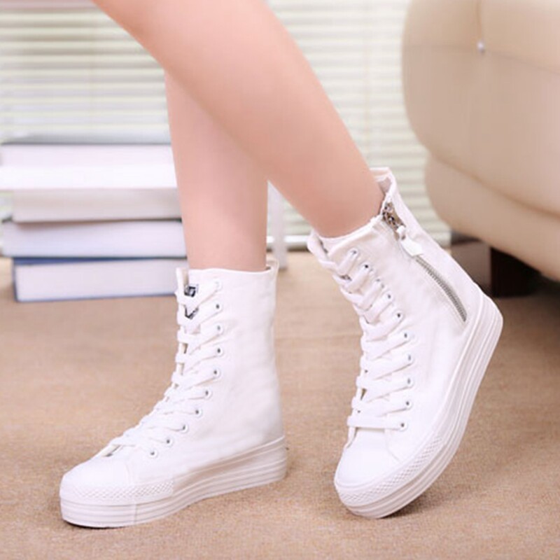 内增高9厘米帆布鞋女2025春季新款侧拉链板鞋韩版百搭厚底松糕鞋