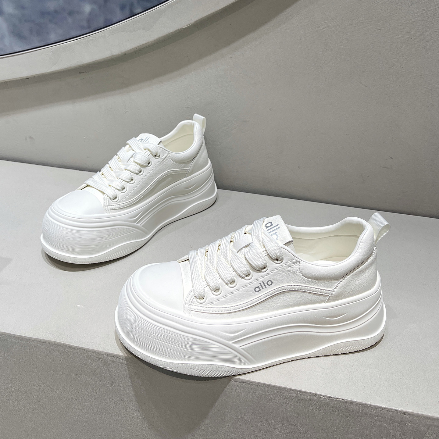 - 鞋厚底女真皮小白