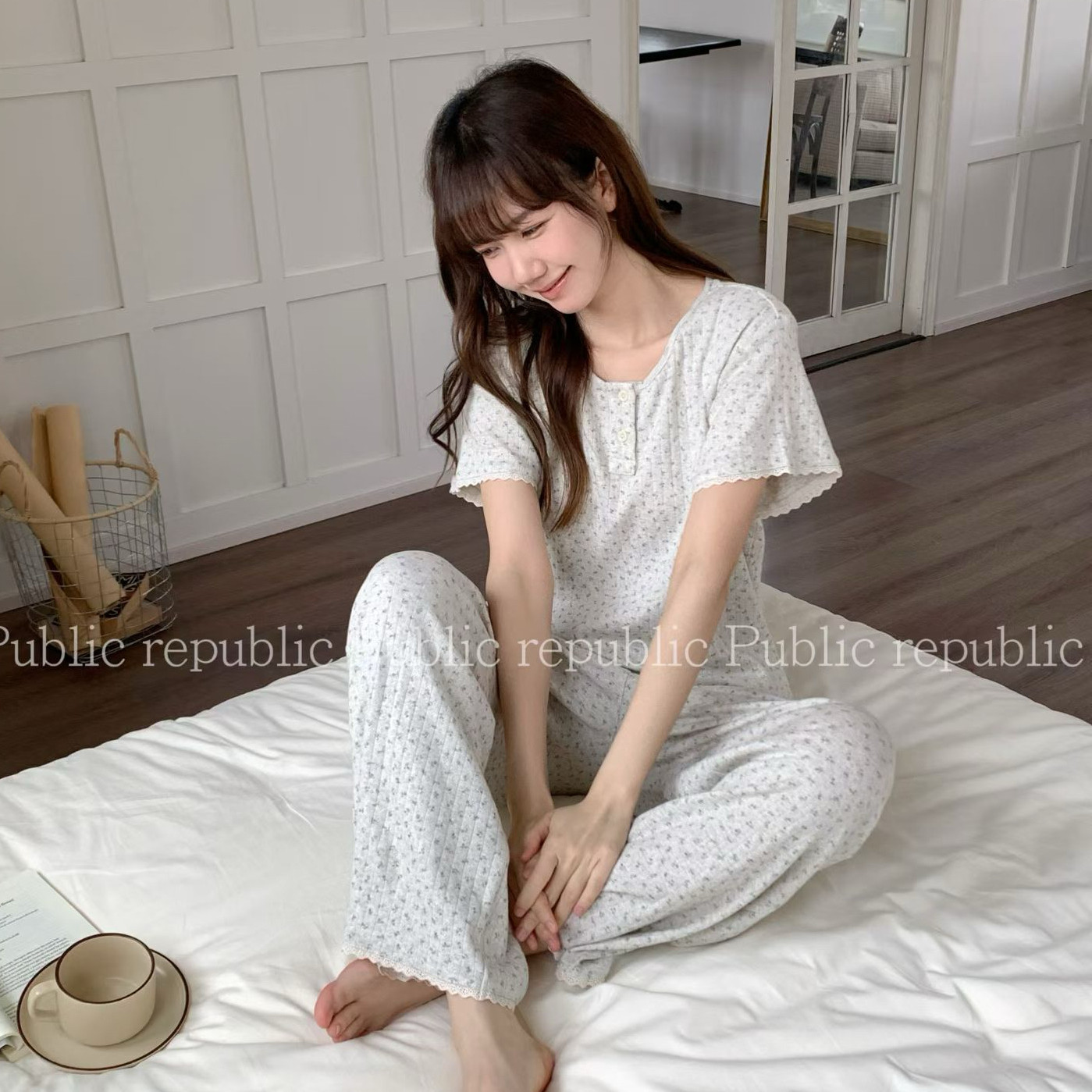 Public republic韩国春夏纯棉针织棉小清新碎花短袖睡衣家居服女