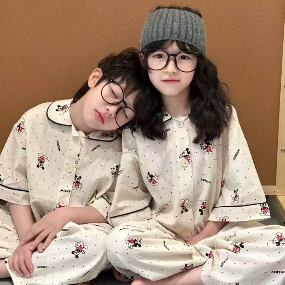 波拉韩国童装男女童睡衣2026春夏款儿童纯棉家居服两件套装亲子