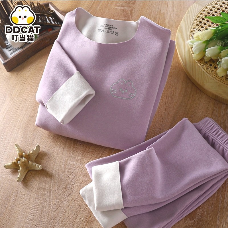 猫人儿童保暖内衣女童加绒加厚秋衣秋裤大童学生a类小孩德绒套装