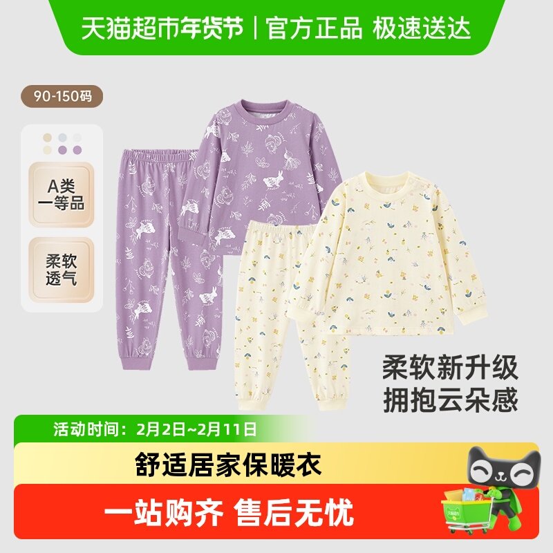 英氏儿童睡衣套装小孩A类男童女童全棉家居服宝宝保暖内衣秋衣裤