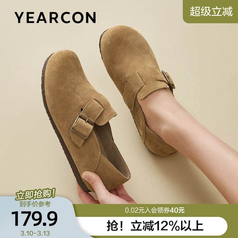 意尔康平底勃肯鞋女全包真皮博肯单鞋软底一脚蹬2026春秋款豆豆鞋