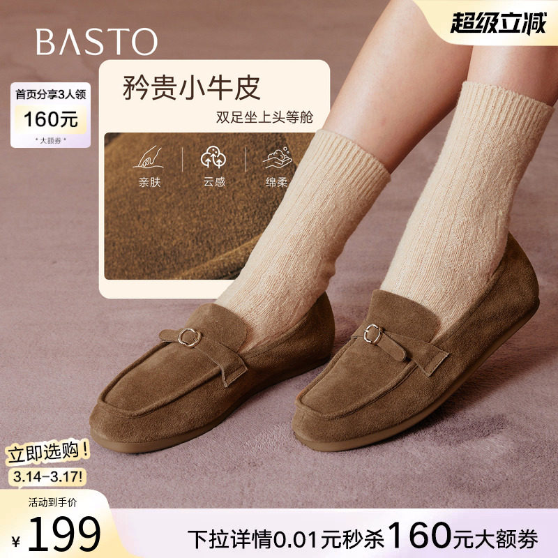 百思图2026春新款真皮平底miu系乐福鞋豆豆鞋复古女单鞋C7071AA6