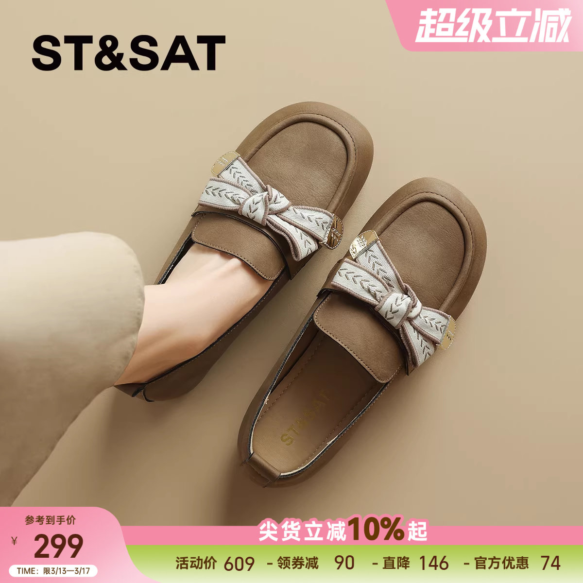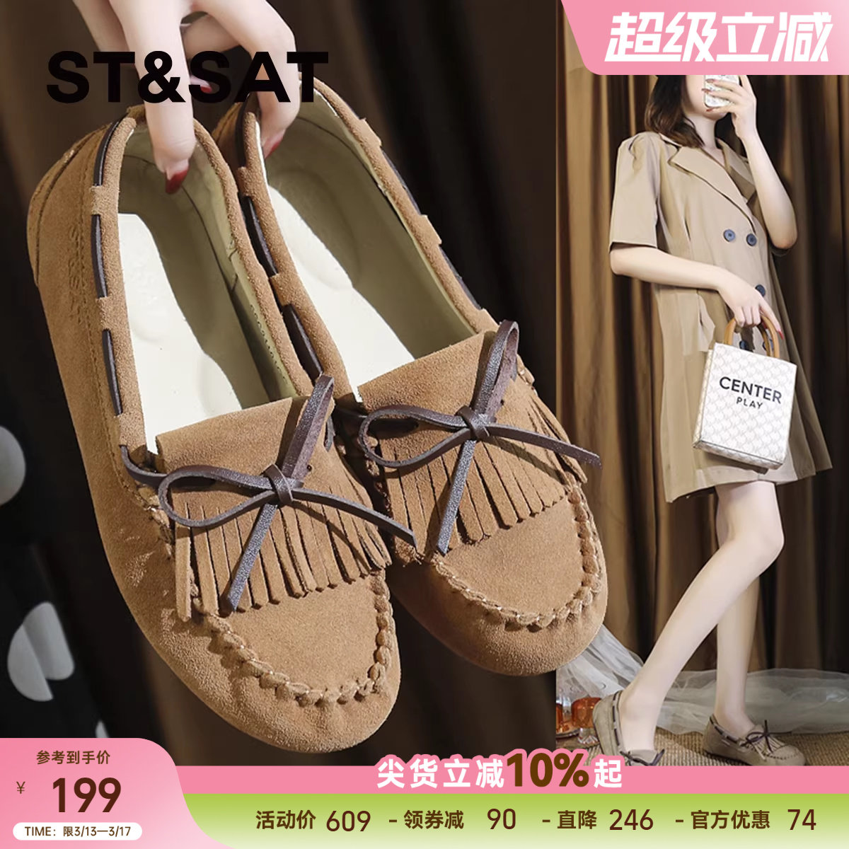 星期六真皮平底豆豆鞋女2024秋季新款法式舒适软底乐福鞋通勤上班
