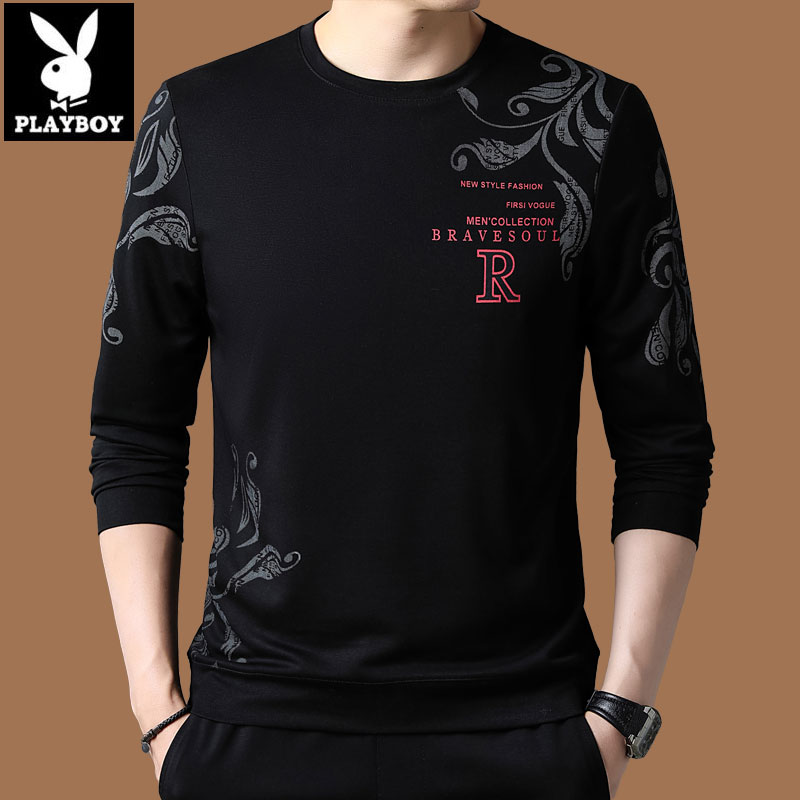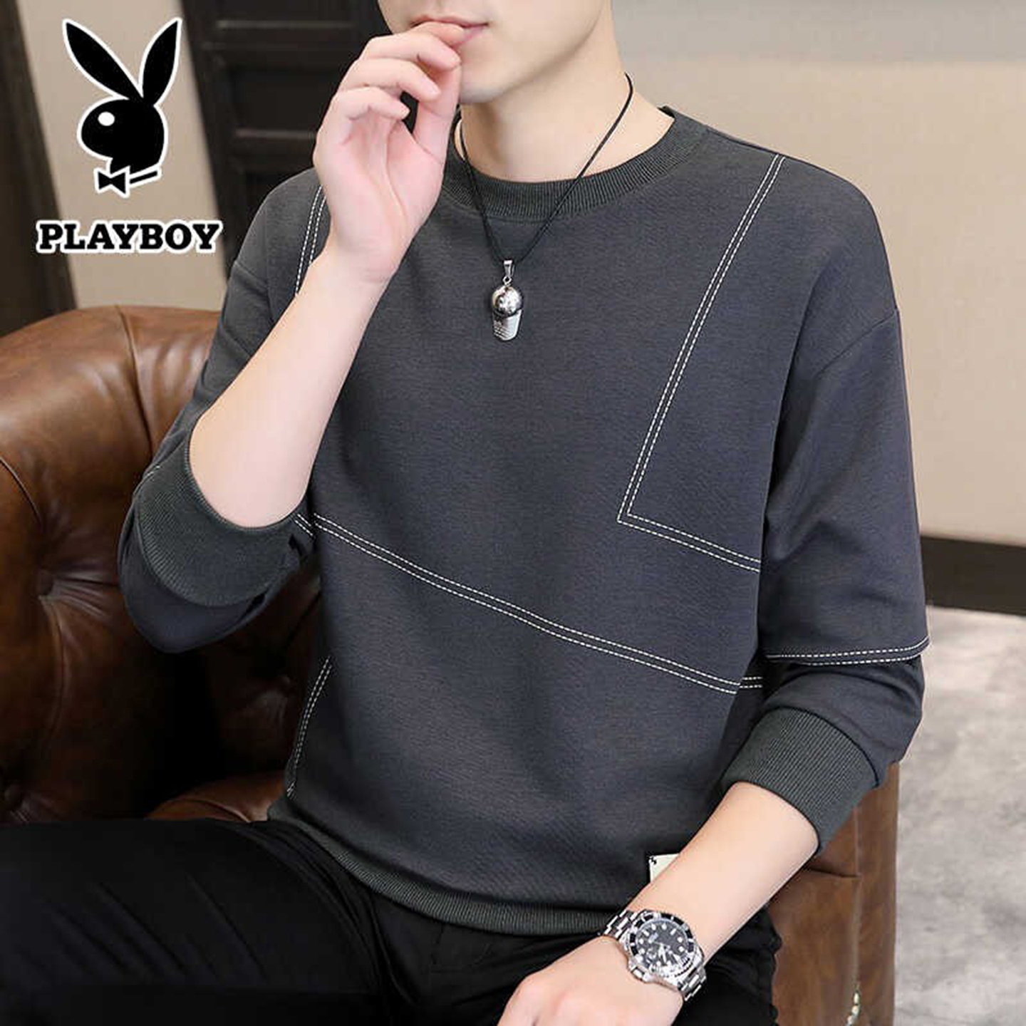 花花公子长袖t恤男士纯棉圆领卫衣春秋装新款宽松上衣体恤打底衫T