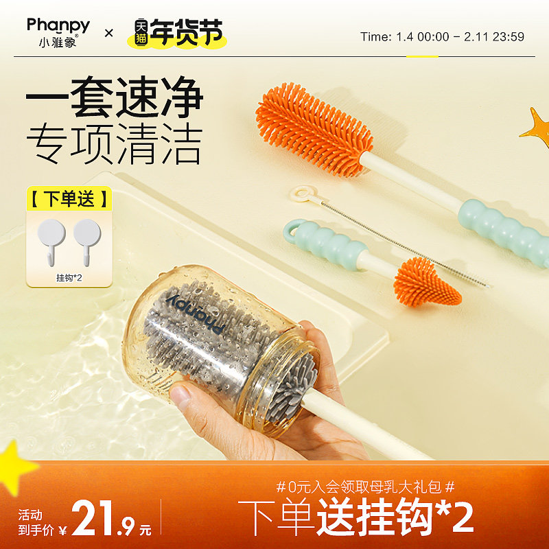 小雅象奶瓶刷新生婴儿硅胶洗奶嘴吸管涮子三合一便携式清洁刷套装