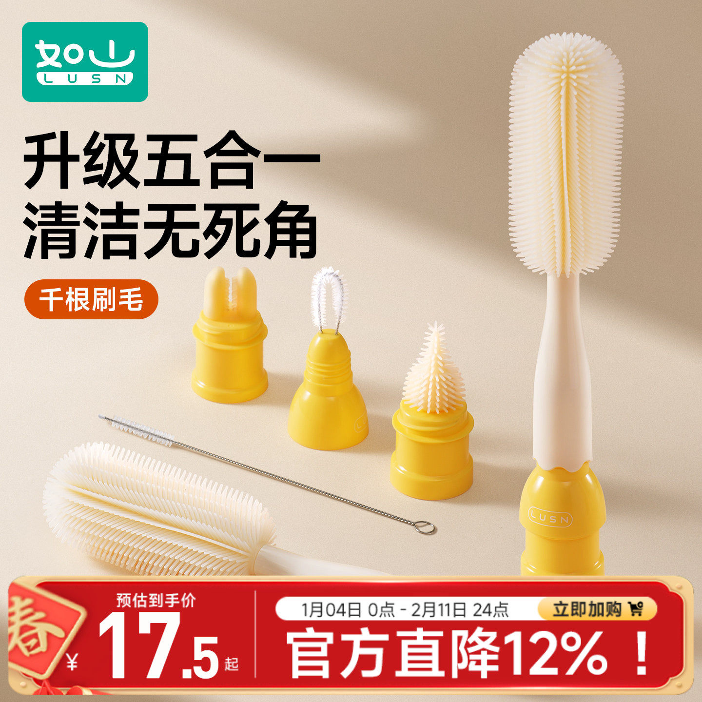 如山奶瓶刷千毛硅胶杯刷新生婴儿专用奶嘴吸管清洗刷子涮清洁套装