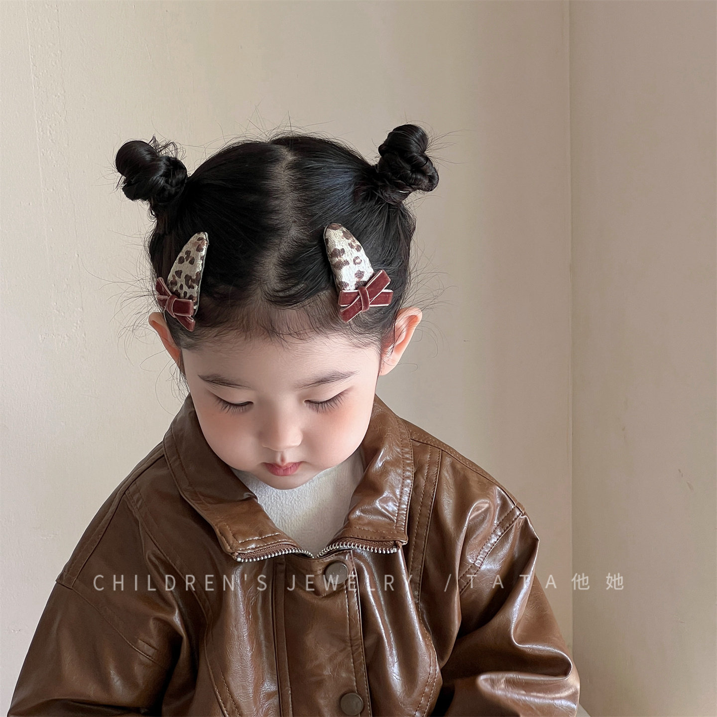 2026秋冬布艺豹纹头饰蝴蝶结bb夹女童小女孩漂亮的发夹前额碎发夹