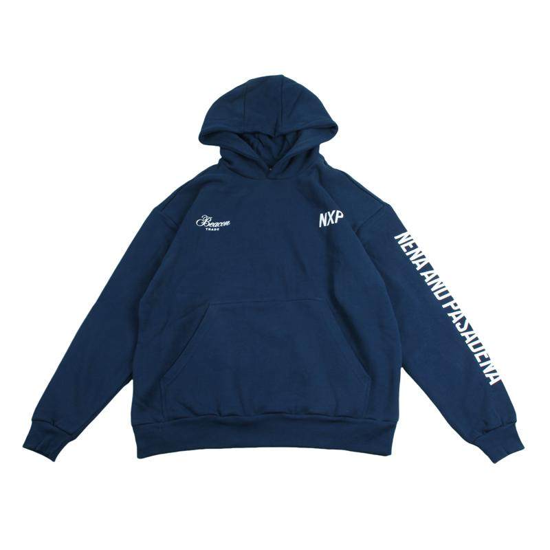 藏青色重磅连帽卫衣男女美式复古印花宽松Oversize上衣情侣外套潮