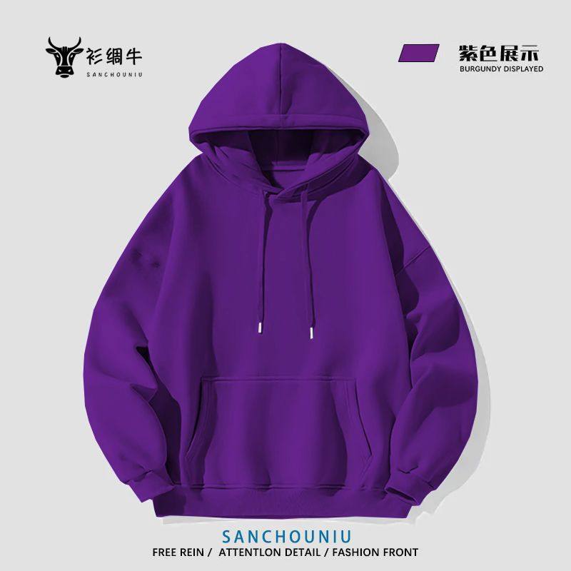 宽松紫色连帽卫衣oversize宽松外套男女秋款外穿纯色情侣学生上衣
