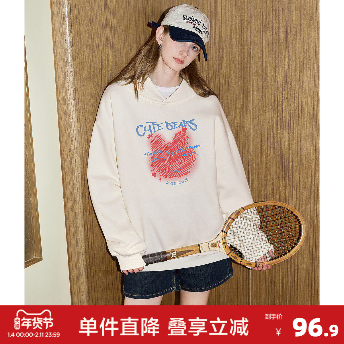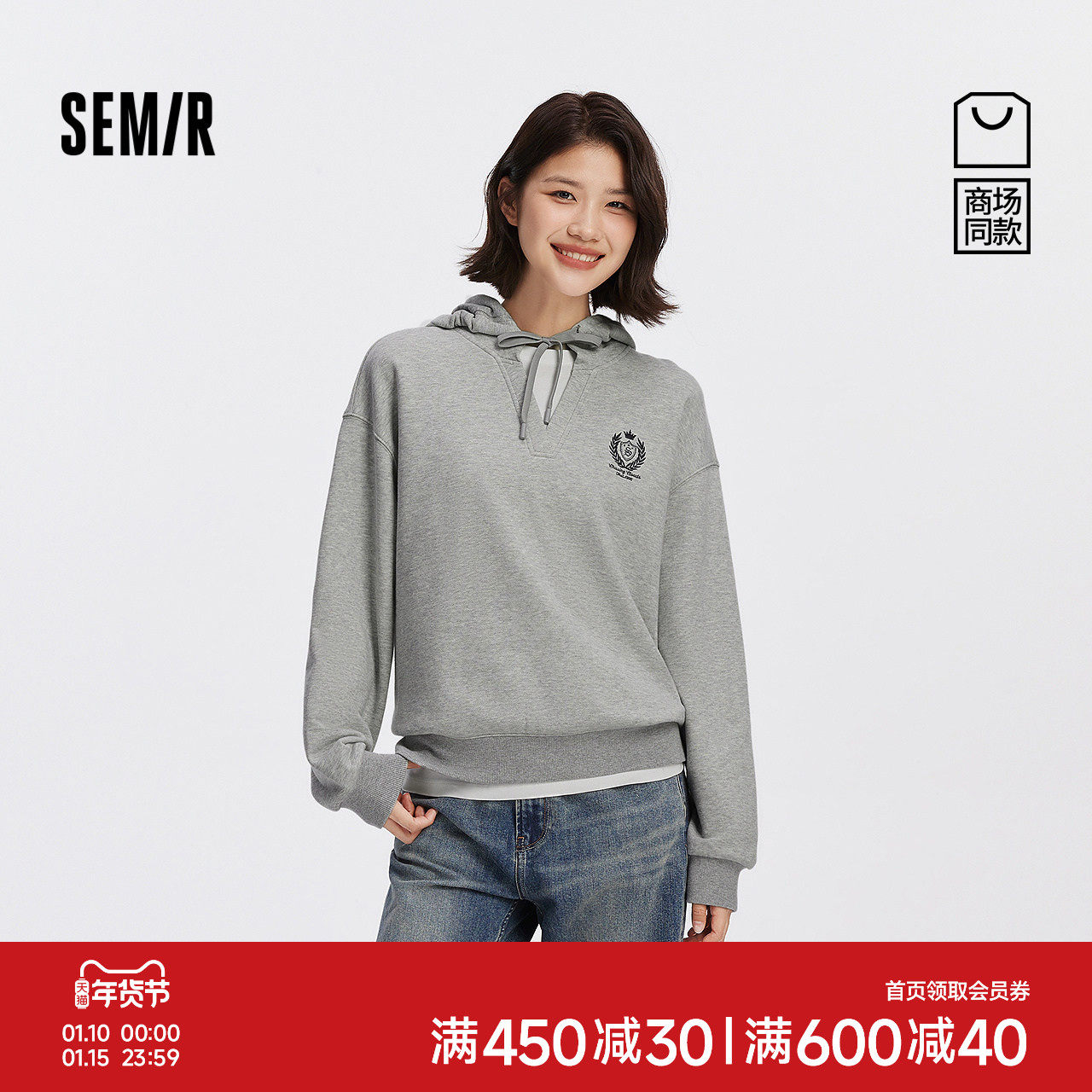 [商场同款]森马卫衣女连帽oversize慵懒2025秋新款刺绣假两件上衣