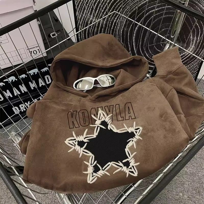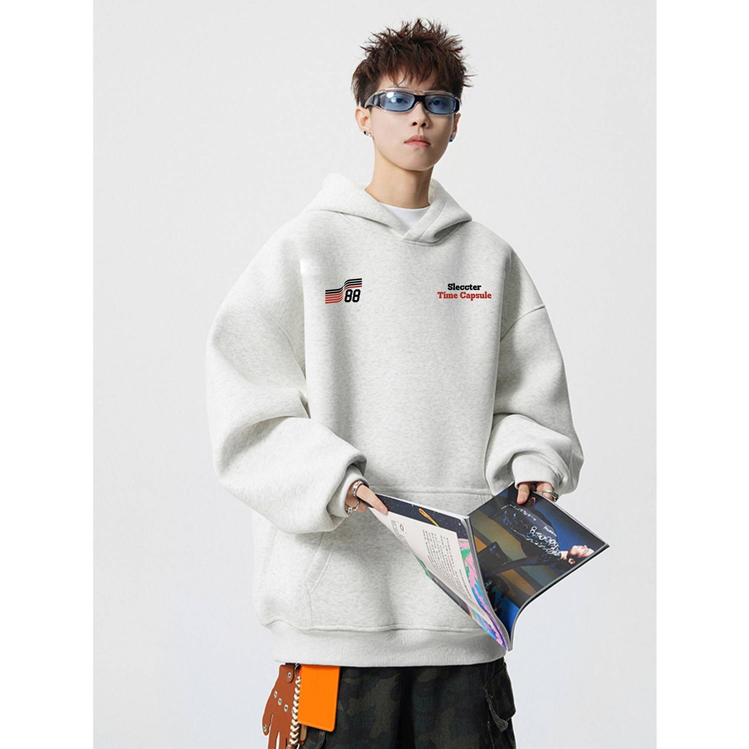 美式三星字母印花加绒加厚套头连帽卫衣oversize基础款帽衫