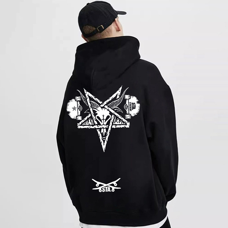 STA原创牛头滑板国潮牌美式连帽卫衣oversize休闲百搭重磅情侣装